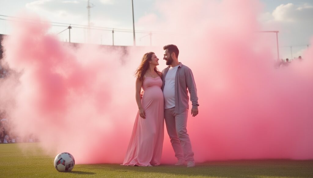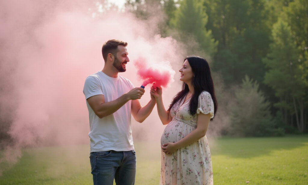 Бұл — интриганы жариялаудың жарқын әрі кинематографиялық тәсілі, әсіресе ашық ауада өте әсерлі көрінеді. Қажетті сәтте болашақ ата-аналар түтін патронын немесе қауіпсіз түрлі түсті ұнтақ салынған арнайы хлопушканы іске қосады. Айналаға қажетті реңктегі қою түтін көтеріліп, бүкіл кеңістік көк немесе қызғылт түске боялады.