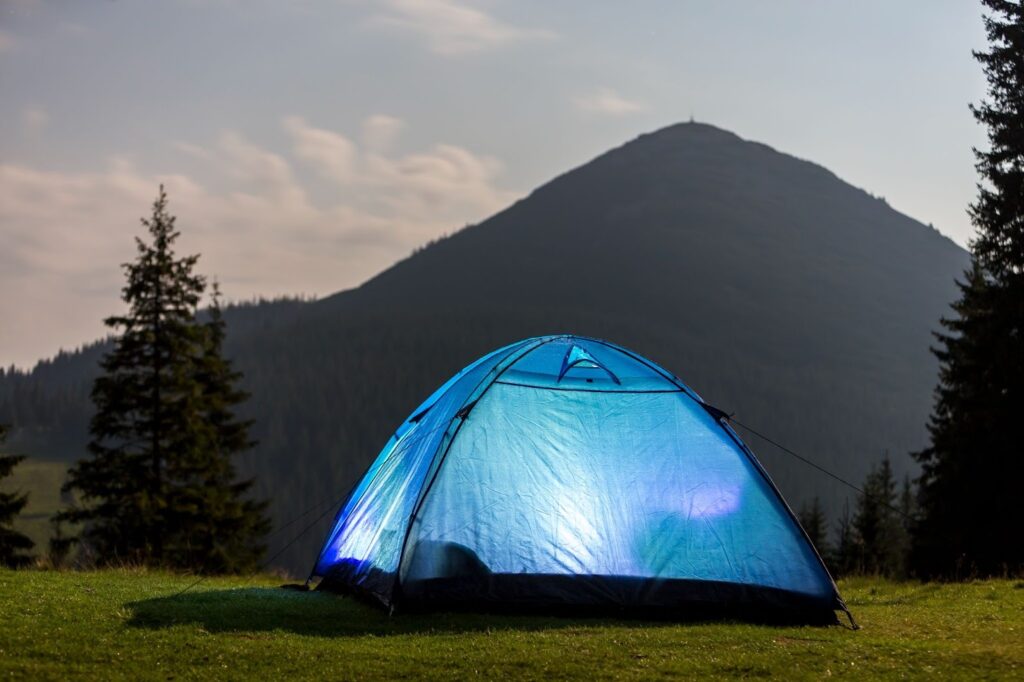 - Палатки. Большинство современных палаток делают из полиэстера. Он не растягивается при намокании, быстро сохнет и устойчив к ультрафиолету. Часто его покрывают слоем полиуретана (PU) или силикона, чтобы защитить от дождя.
